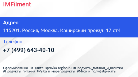 IMFilment по адресу 115201, Россия, Москва, Каширский проезд, 17 ст4 в дальнейшем Организация, размещена в следующих категориях: