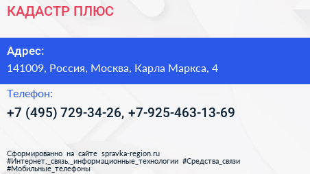 КАДАСТР ПЛЮС по адресу 141009, Россия, Москва, Карла Маркса, 4 в дальнейшем Организация, размещена в следующих категориях: