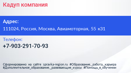 Кадуп, компания по адресу 111024, Россия, Москва, Авиамоторная, 55 к31 в дальнейшем Организация, размещена в следующих категориях: