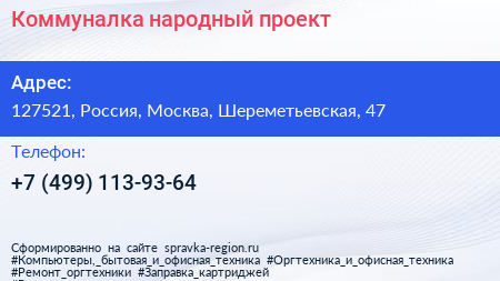 Адрес: 125504, Москва г, вн.тер.г. муниципальный округ Западное Дегунино, ш Дмитровское, д. 71Б, помещ. комн.21,офис 23Б