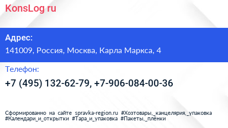 KonsLog.ru по адресу 141009, Россия, Москва, Карла Маркса, 4 в дальнейшем Организация, размещена в следующих категориях: