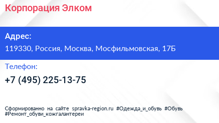 Корпорация Элком по адресу 119330, Россия, Москва, Мосфильмовская, 17Б в дальнейшем Организация, размещена в следующих категориях: