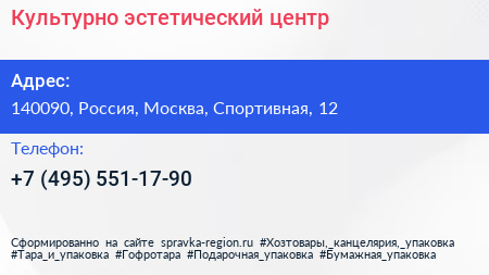 Культурно-эстетический центр по адресу 140090, Россия, Москва, Спортивная, 12 в дальнейшем Организация, размещена в следующих категориях: