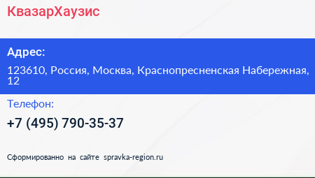 КвазарХаузис по адресу 123610, Россия, Москва, Краснопресненская Набережная, 12 в дальнейшем Организация, размещена в следующих категориях: