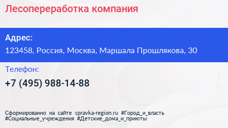 Лесопереработка, компания по адресу 123458, Россия, Москва, Маршала Прошлякова, 30 в дальнейшем Организация, размещена в следующих категориях: