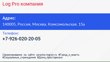 Log-Pro, компания по адресу 140005, Россия, Москва, Комсомольская, 15а в дальнейшем Организация, размещена в следующих категориях: