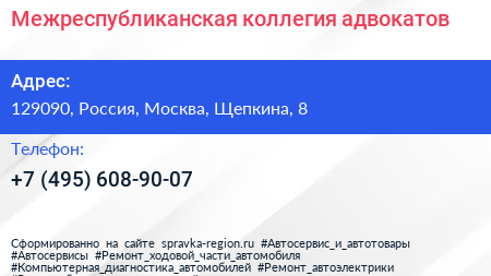 Межреспубликанская коллегия адвокатов по адресу 129090, Россия, Москва, Щепкина, 8 в дальнейшем Организация, размещена в следующих категориях: