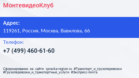 МонтевидеоКлуб по адресу 119261, Россия, Москва, Вавилова, 66 в дальнейшем Организация, размещена в следующих категориях:
