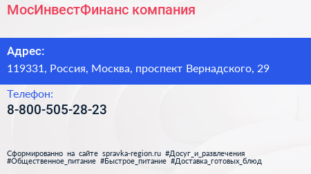 МосИнвестФинанс, компания по адресу 119331, Россия, Москва, проспект Вернадского, 29 в дальнейшем Организация, размещена в следующих категориях: