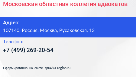 Московская областная коллегия адвокатов по адресу 107140, Россия, Москва, Русаковская, 13 в дальнейшем Организация, размещена в следующих категориях: