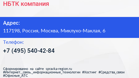 НБТК, компания по адресу 117198, Россия, Москва, Миклухо-Маклая, 6 в дальнейшем Организация, размещена в следующих категориях: