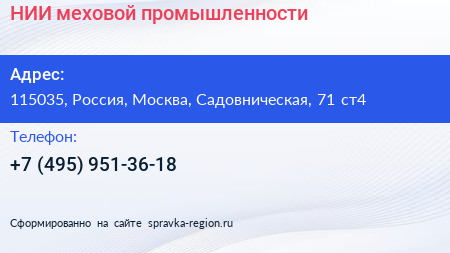 НИИ меховой промышленности по адресу 115035, Россия, Москва, Садовническая, 71 ст4 в дальнейшем Организация, размещена в следующих категориях: