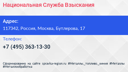 Национальная Служба Взыскания по адресу 117342, Россия, Москва, Бутлерова, 17 в дальнейшем Организация, размещена в следующих категориях: