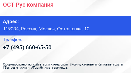 ОСТ Рус, компания по адресу 119034, Россия, Москва, Остоженка, 10 в дальнейшем Организация, размещена в следующих категориях: