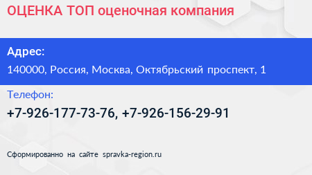 ОЦЕНКА ТОП, оценочная компания по адресу 140000, Россия, Москва, Октябрьский проспект, 1 в дальнейшем Организация, размещена в следующих категориях: