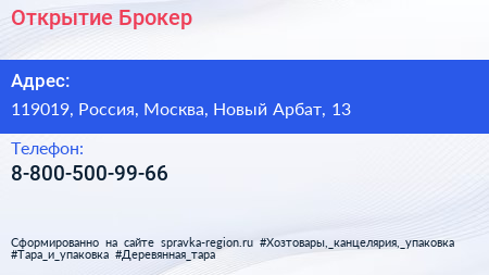 Открытие Брокер по адресу 119019, Россия, Москва, Новый Арбат, 13 в дальнейшем Организация, размещена в следующих категориях: