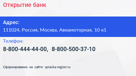 Открытие, банк по адресу 111024, Россия, Москва, Авиамоторная, 10 к1 в дальнейшем Организация, размещена в следующих категориях: