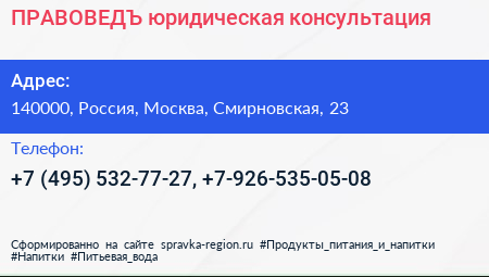 ПРАВОВЕДЪ, юридическая консультация по адресу 140000, Россия, Москва, Смирновская, 23 в дальнейшем Организация, размещена в следующих категориях: