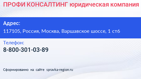 ПРОФИ-КОНСАЛТИНГ, юридическая компания по адресу 117105, Россия, Москва, Варшавское шоссе, 1 ст6 в дальнейшем Организация, размещена в следующих категориях:
