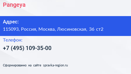 Pangeya по адресу 115093, Россия, Москва, Люсиновская, 36 ст2 в дальнейшем Организация, размещена в следующих категориях: