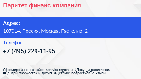 Паритет финанс, компания по адресу 107014, Россия, Москва, Гастелло, 2 в дальнейшем Организация, размещена в следующих категориях: