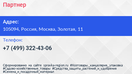 Партнер по адресу 105094, Россия, Москва, Золотая, 11 в дальнейшем Организация, размещена в следующих категориях: