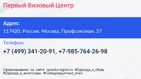 Первый Визовый Центр по адресу 117420, Россия, Москва, Профсоюзная, 57 в дальнейшем Организация, размещена в следующих категориях: