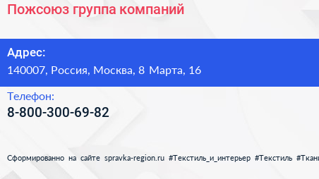 Пожсоюз, группа компаний по адресу 140007, Россия, Москва, 8 Марта, 16 в дальнейшем Организация, размещена в следующих категориях: