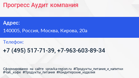 Прогресс-Аудит, компания по адресу 140005, Россия, Москва, Кирова, 20а в дальнейшем Организация, размещена в следующих категориях: