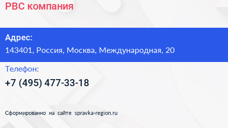 РВС, компания по адресу 143401, Россия, Москва, Международная, 20 в дальнейшем Организация, размещена в следующих категориях: