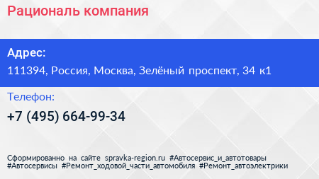 Рациональ, компания по адресу 111394, Россия, Москва, Зелёный проспект, 34 к1 в дальнейшем Организация, размещена в следующих категориях: