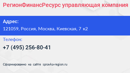 РегионФинансРесурс, управляющая компания по адресу 121059, Россия, Москва, Киевская, 7 к2 в дальнейшем Организация, размещена в следующих категориях: