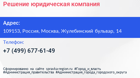 Решение, юридическая компания по адресу 109153, Россия, Москва, Жулебинский бульвар, 14 в дальнейшем Организация, размещена в следующих категориях: