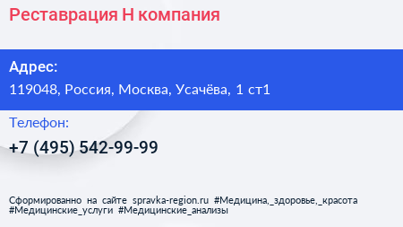 Реставрация Н, компания по адресу 119048, Россия, Москва, Усачёва, 1 ст1 в дальнейшем Организация, размещена в следующих категориях: