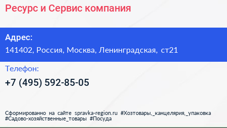 Ресурс и Сервис, компания по адресу 141402, Россия, Москва, Ленинградская, ст21 в дальнейшем Организация, размещена в следующих категориях: