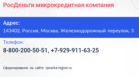 РосДеньги, микрокредитная компания по адресу 143402, Россия, Москва, Железнодорожный переулок, 3 в дальнейшем Организация, размещена в следующих категориях: