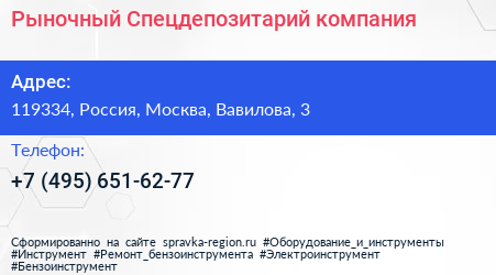 Рыночный Спецдепозитарий, компания по адресу 119334, Россия, Москва, Вавилова, 3 в дальнейшем Организация, размещена в следующих категориях: