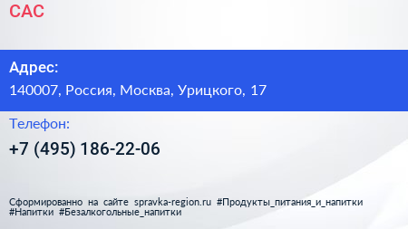 САС по адресу 140007, Россия, Москва, Урицкого, 17 в дальнейшем Организация, размещена в следующих категориях: