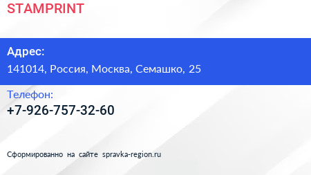 STAMPRINT по адресу 141014, Россия, Москва, Семашко, 25 в дальнейшем Организация, размещена в следующих категориях: