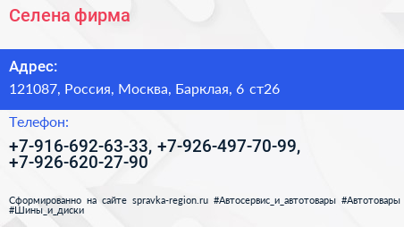 Селена, фирма по адресу 121087, Россия, Москва, Барклая, 6 ст26 в дальнейшем Организация, размещена в следующих категориях: