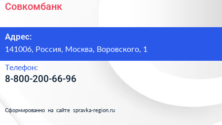 Совкомбанк по адресу 141006, Россия, Москва, Воровского, 1 в дальнейшем Организация, размещена в следующих категориях: