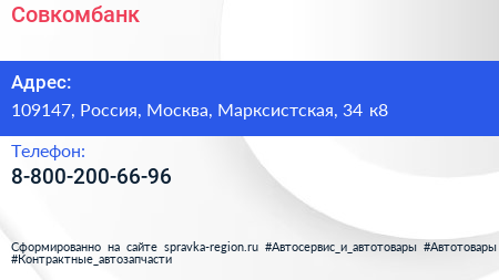 Совкомбанк по адресу 109147, Россия, Москва, Марксистская, 34 к8 в дальнейшем Организация, размещена в следующих категориях: