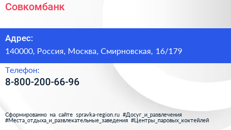 Совкомбанк по адресу 140000, Россия, Москва, Смирновская, 16/179 в дальнейшем Организация, размещена в следующих категориях: