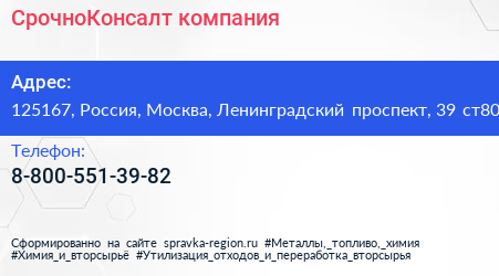 СрочноКонсалт, компания по адресу 125167, Россия, Москва, Ленинградский проспект, 39 ст80 в дальнейшем Организация, размещена в следующих категориях: