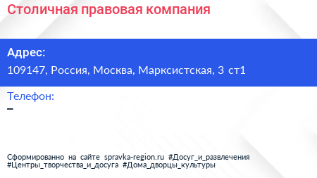 Столичная правовая компания по адресу 109147, Россия, Москва, Марксистская, 3 ст1 в дальнейшем Организация, размещена в следующих категориях: