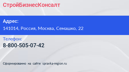 СтройБизнесКонсалт по адресу 141014, Россия, Москва, Семашко, 22 в дальнейшем Организация, размещена в следующих категориях:
