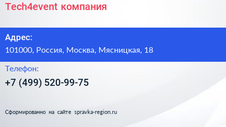 Tech4event, компания по адресу 101000, Россия, Москва, Мясницкая, 18 в дальнейшем Организация, размещена в следующих категориях: