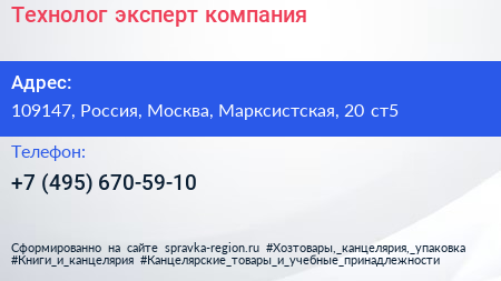Технолог эксперт, компания по адресу 109147, Россия, Москва, Марксистская, 20 ст5 в дальнейшем Организация, размещена в следующих категориях: