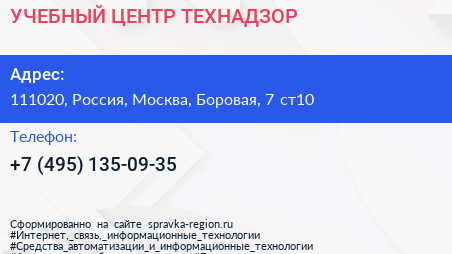 УЧЕБНЫЙ ЦЕНТР ТЕХНАДЗОР по адресу 111020, Россия, Москва, Боровая, 7 ст10 в дальнейшем Организация, размещена в следующих категориях: