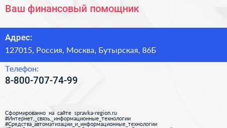 Ваш финансовый помощник по адресу 127015, Россия, Москва, Бутырская, 86Б в дальнейшем Организация, размещена в следующих категориях:
